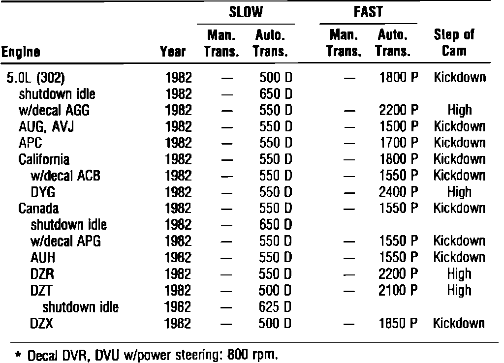 Idle Speed Specifications: