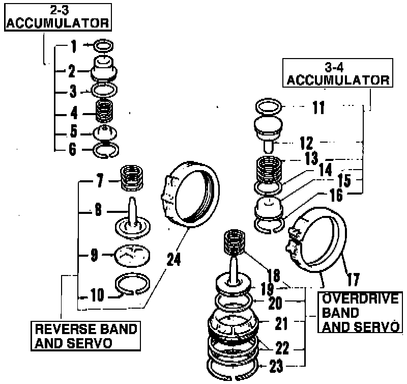 Accumulator, Reverse & Overdrive Band & Servo: