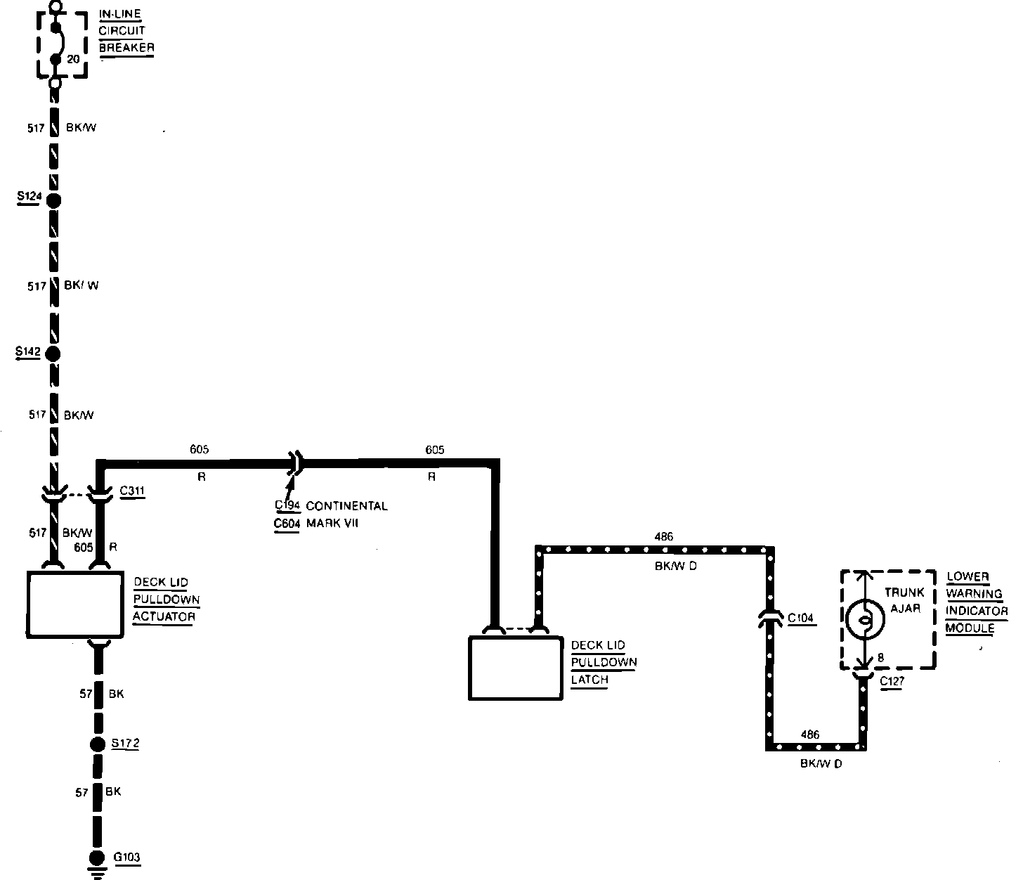 Fig. 58 Deck lid pull down wiring circuit. 1984 Continental & Mark VII: