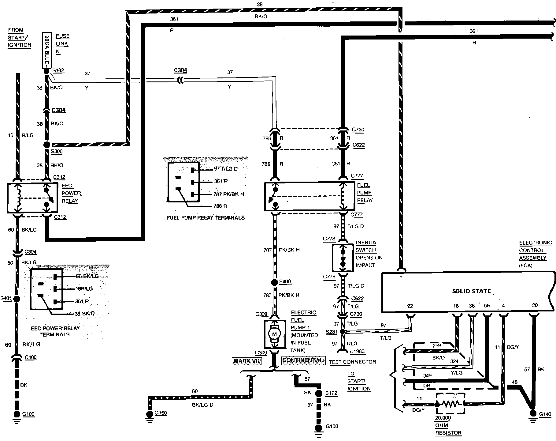 Fig. 20 Electronic Engine Control (EEC-IV) System Wiring Circuit (Part 1 of 4). Continental & Mark VII: