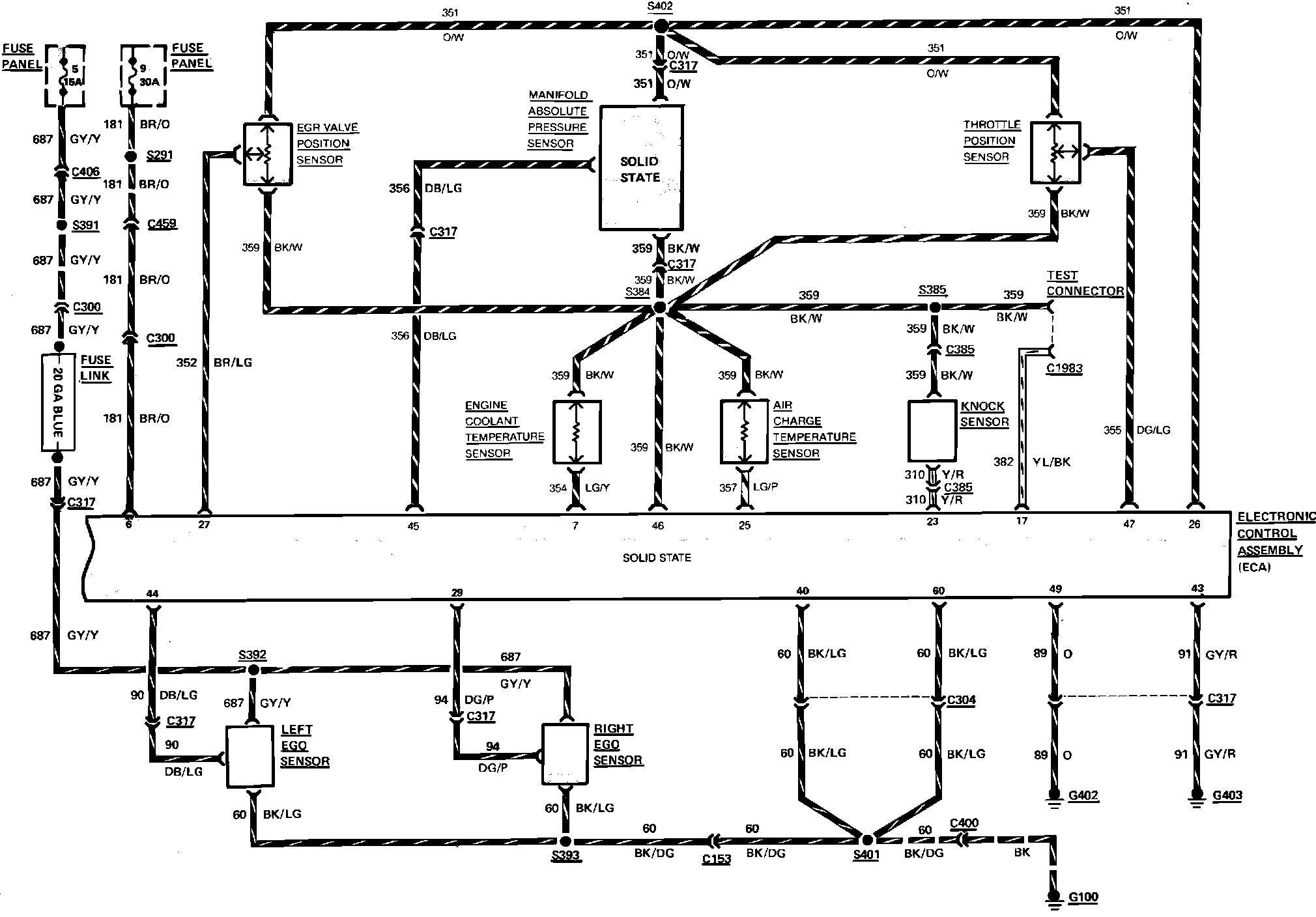Fig. 20 Electronic Engine Control (EEC-IV) System Wiring Circuit (Part 4 of 4). Continental & Mark VII: