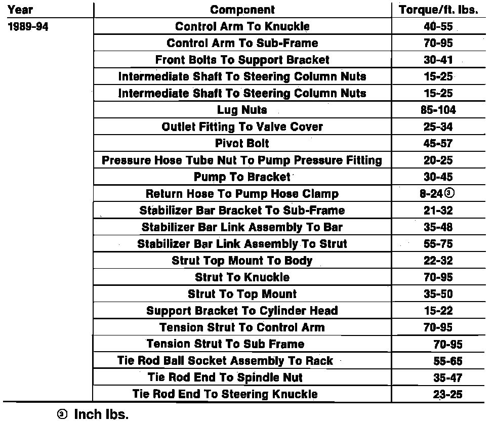 Tightening Specifications: