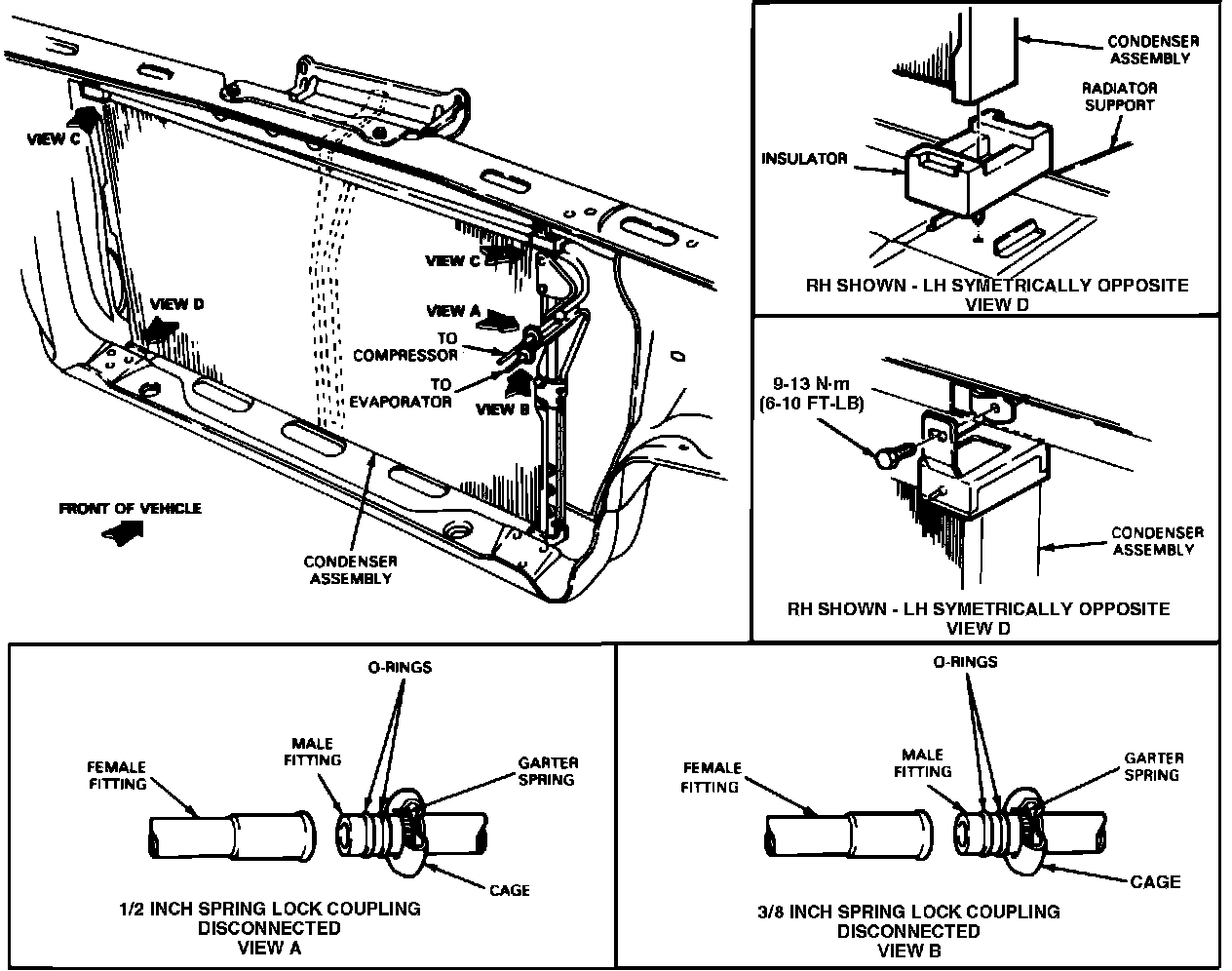 8. Reverse procedure to install. Use new O-rings lubricated with refrigerant oil. Add two ounces of refrigerant oil to new condenser.
