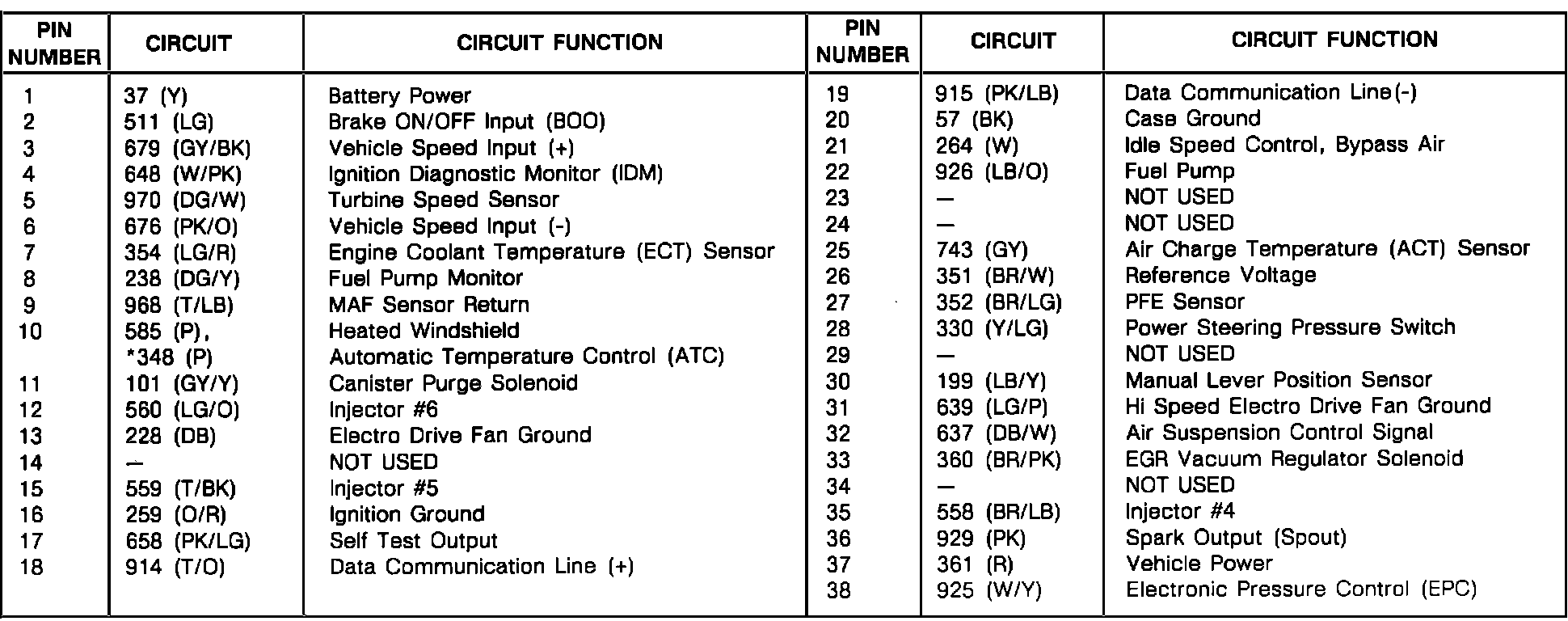 Electronic Engine Control (EEC) Module Connector Pin Identification:
