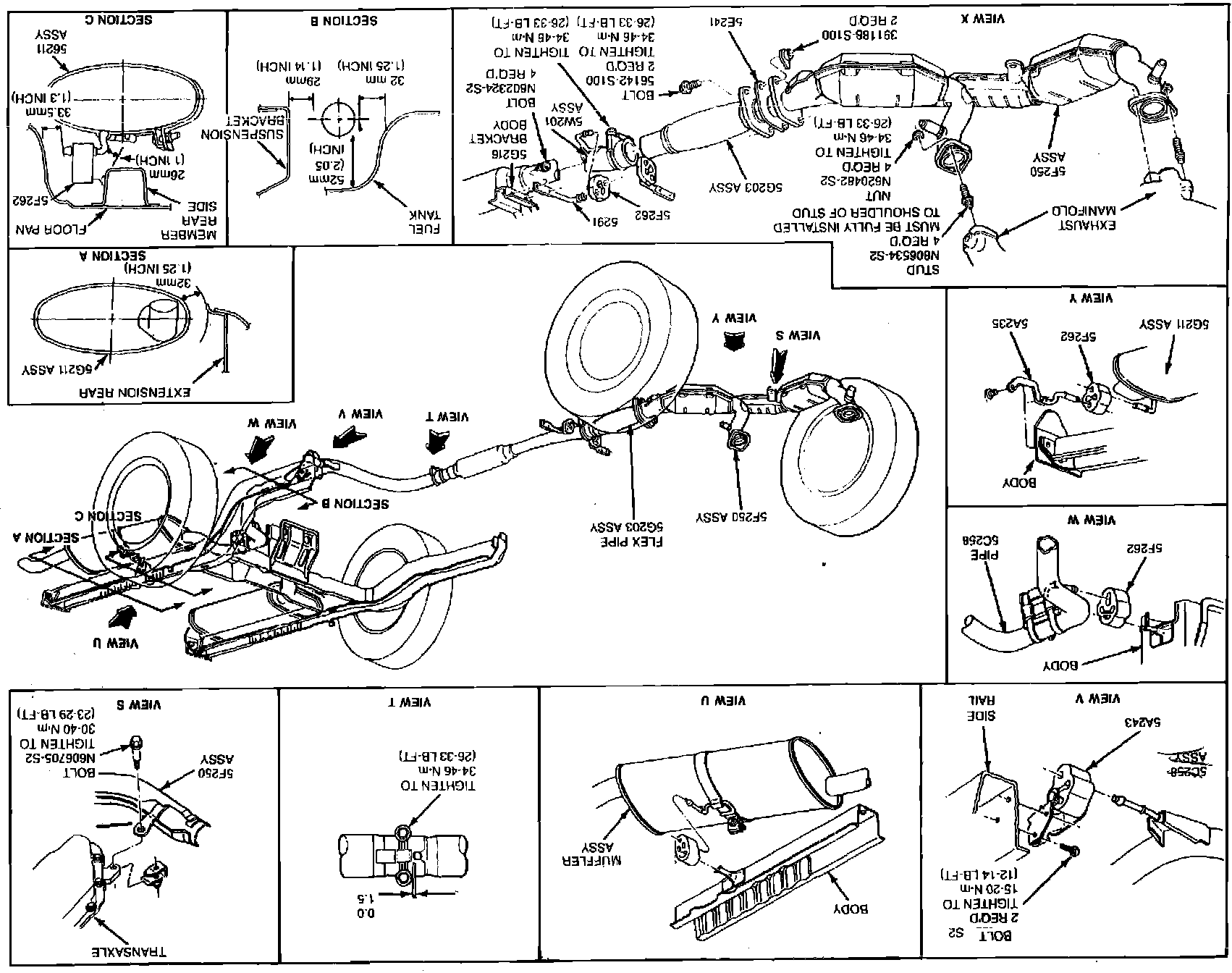 11. Starting at the front of the exhaust, torque the fasteners to the specifications shown on the image.