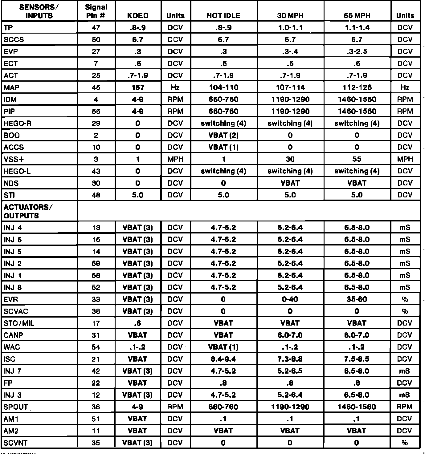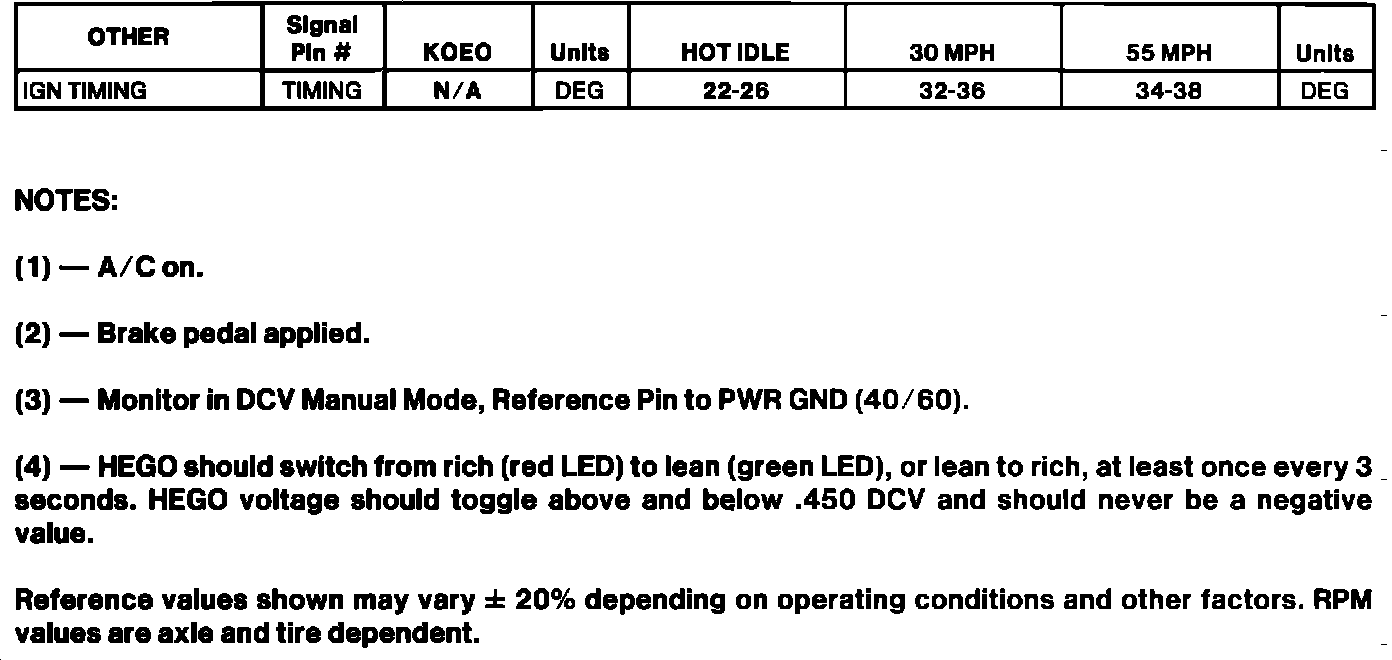 Normal Scan Data Values (Includes PIDs)