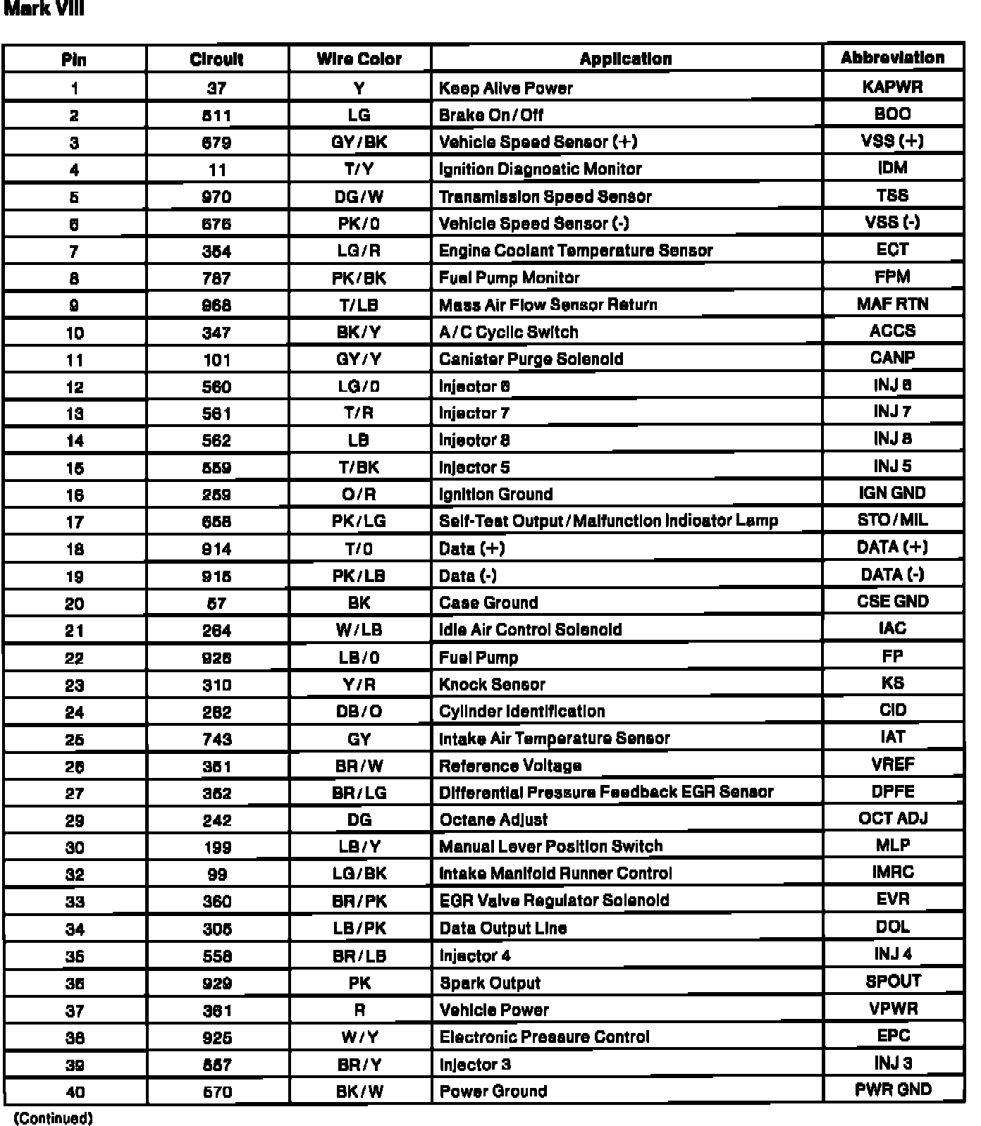 Powertrain Control Module (PCM) Connector Pin Usage: