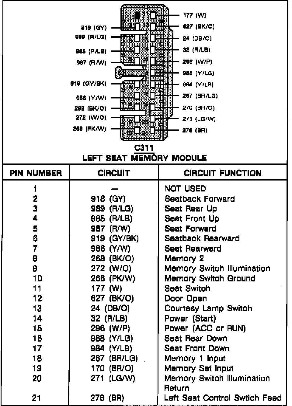 Left Seat Memory Module: