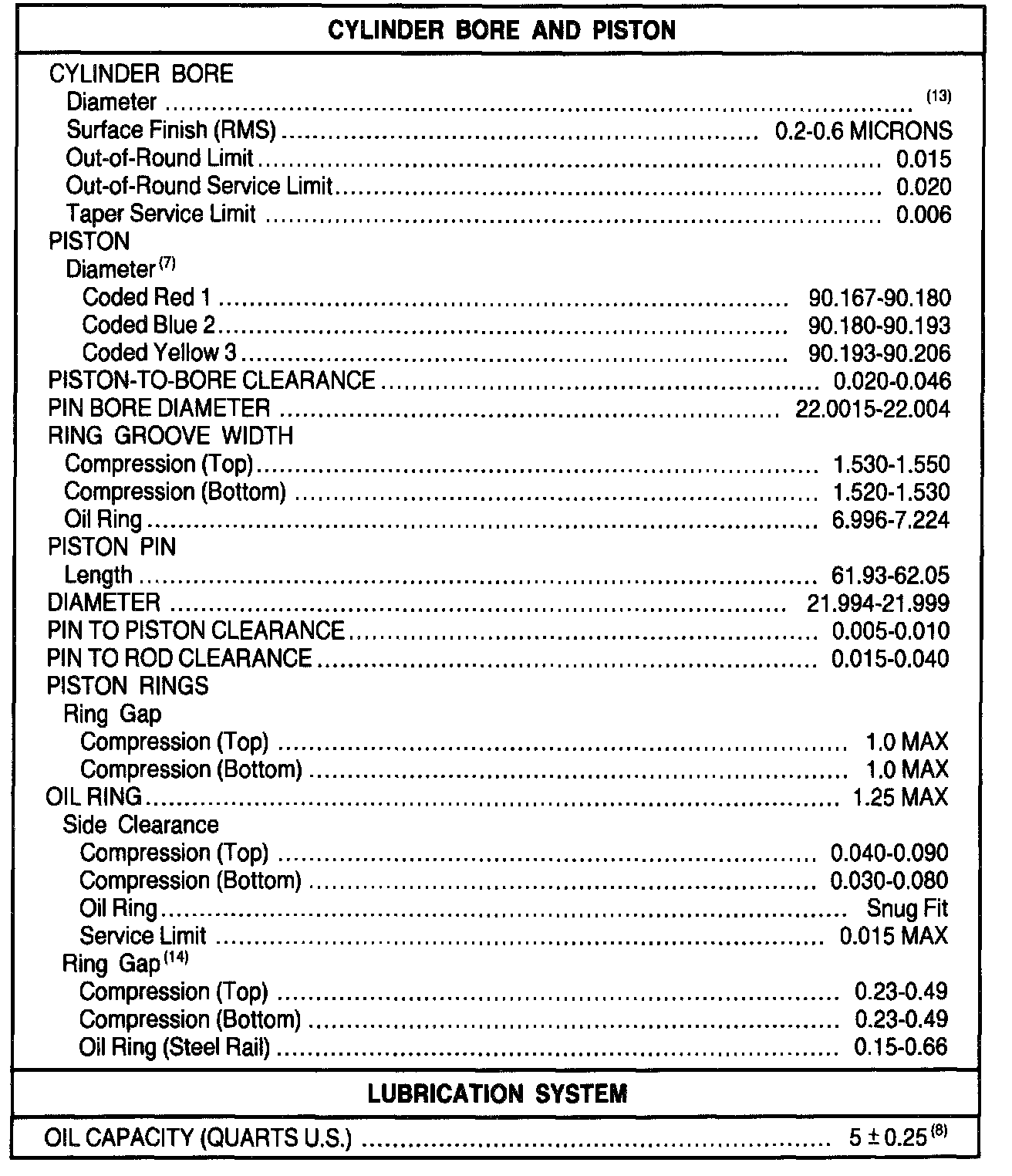 (7) Measured at the piston pin bore centerline, at 90 degrees to the pin.
