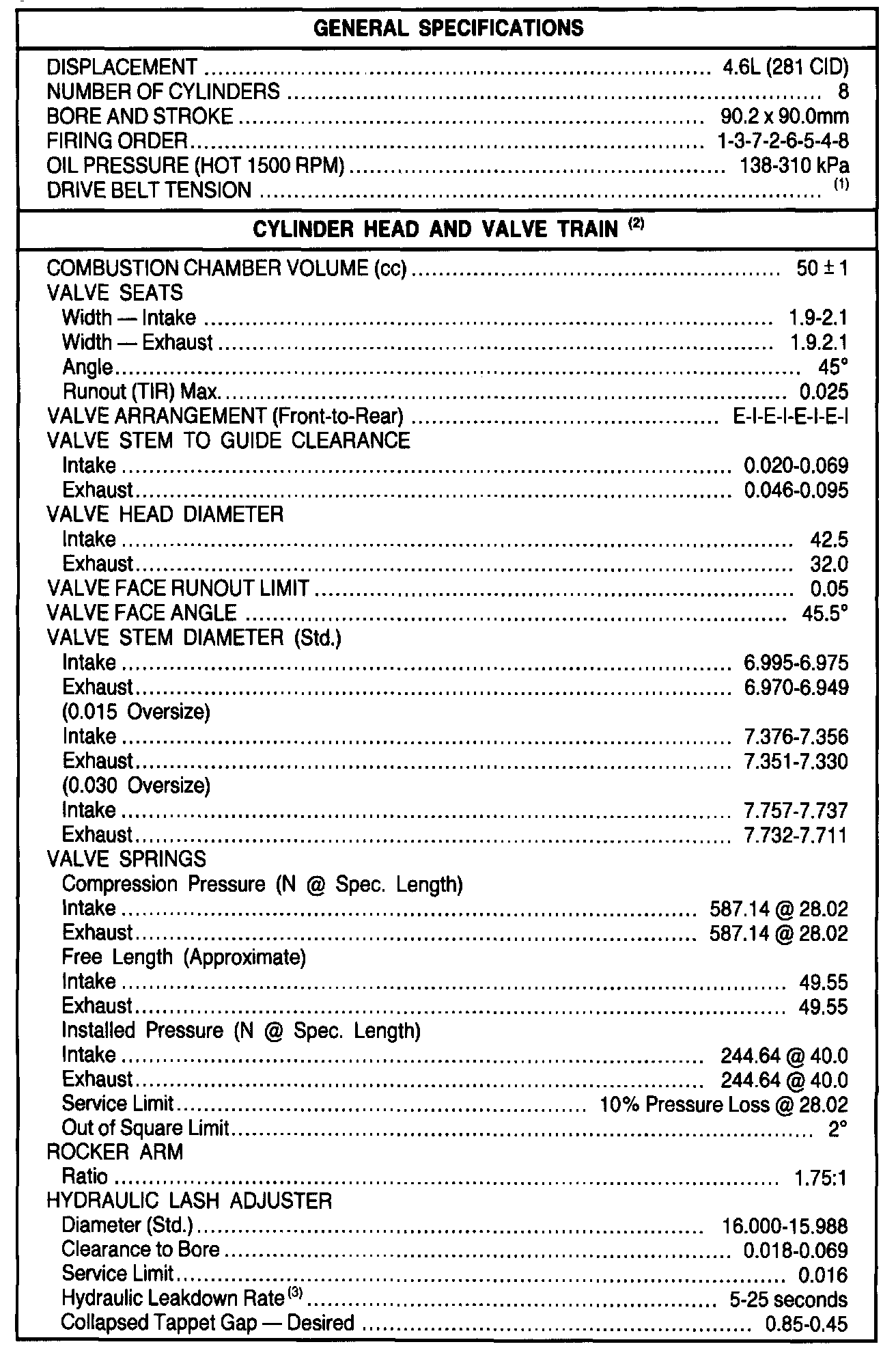 (3) Time required for plunger to leak down 1.6mm of travel with 222N force and leak down fluid in tappet.