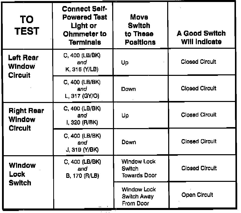 Power Window Switch: Testing and Inspection
