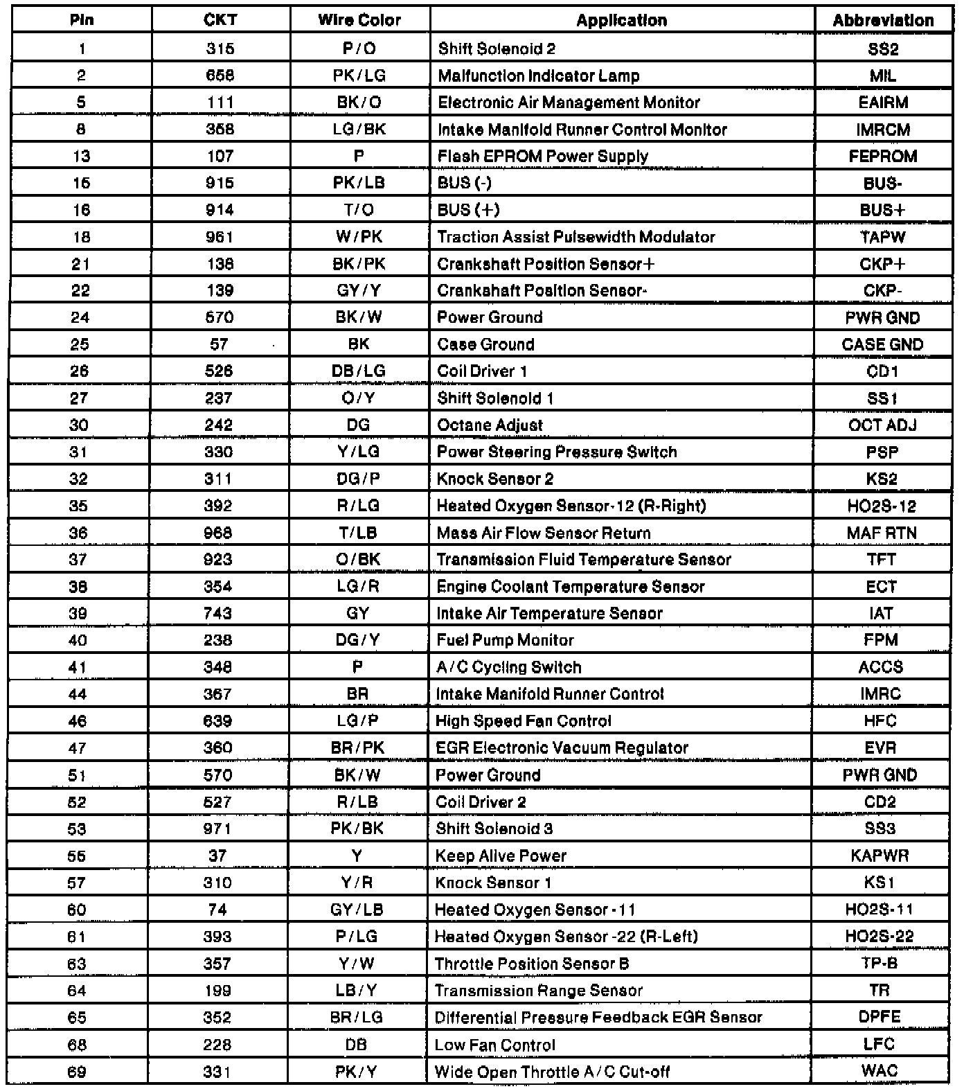 Powertrain Control Module (PCM) Connector Pin Usage (Part 2 Of 2):