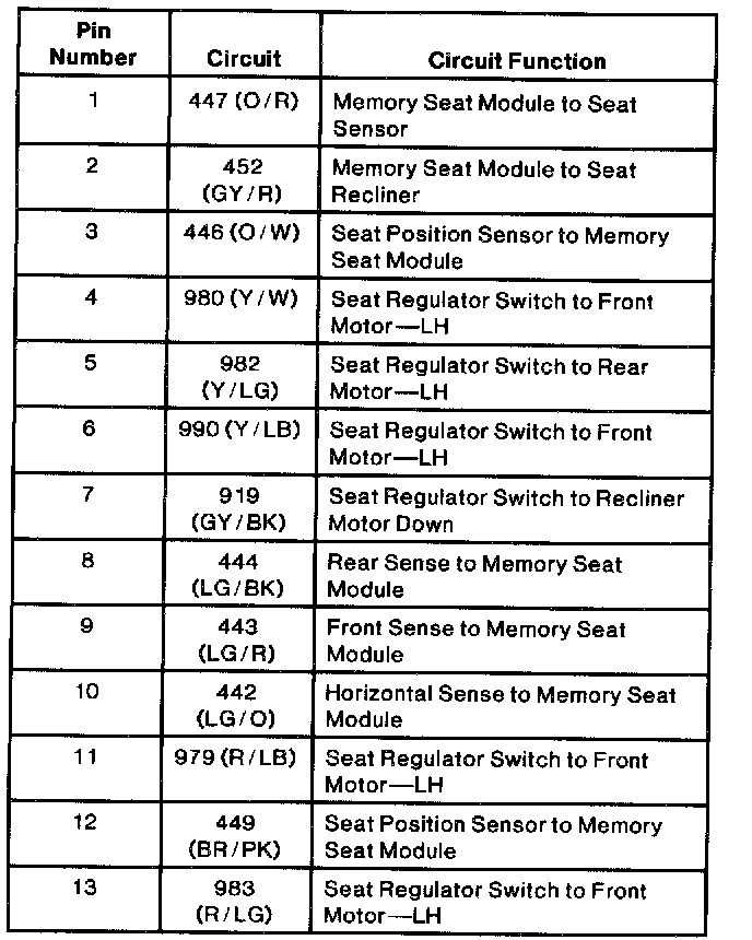 Driver Seat Module Connector C1
