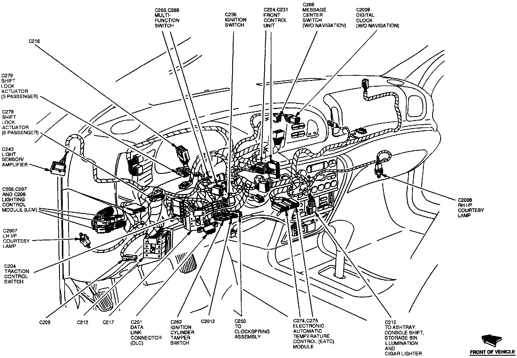 The Electronic Automatic Temperature Control Module is located at the top center of the instrument panel.