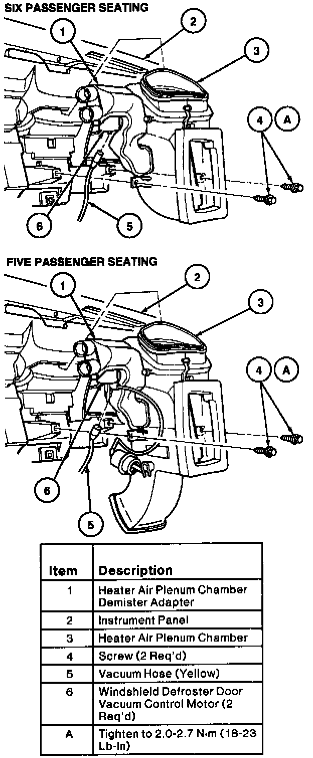 3. Remove two screws retaining heater air plenum chamber to instrument panel.