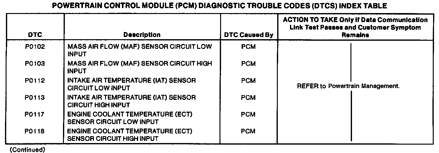 Powertrain Control Module DTC Chart Part 2 Of 6: