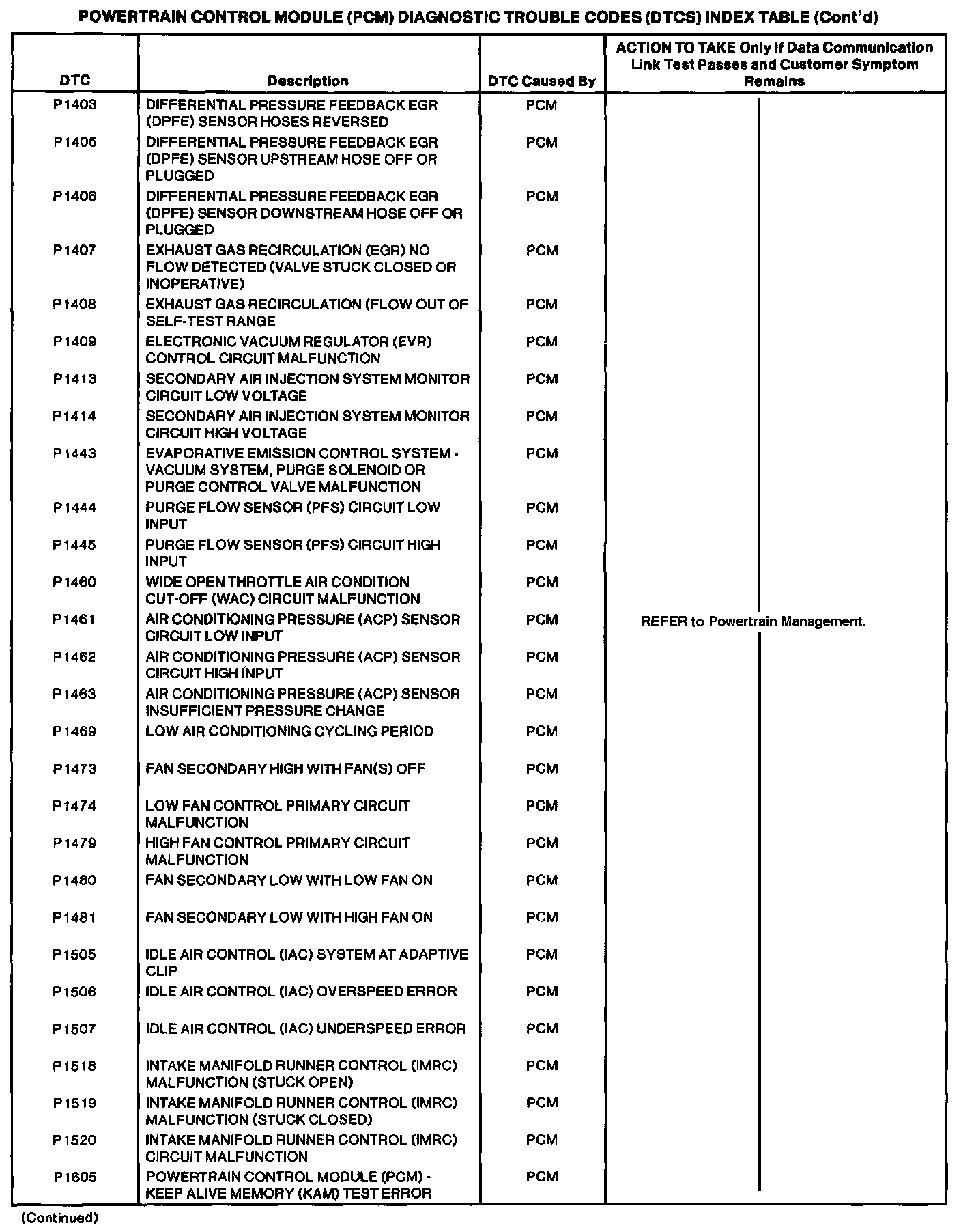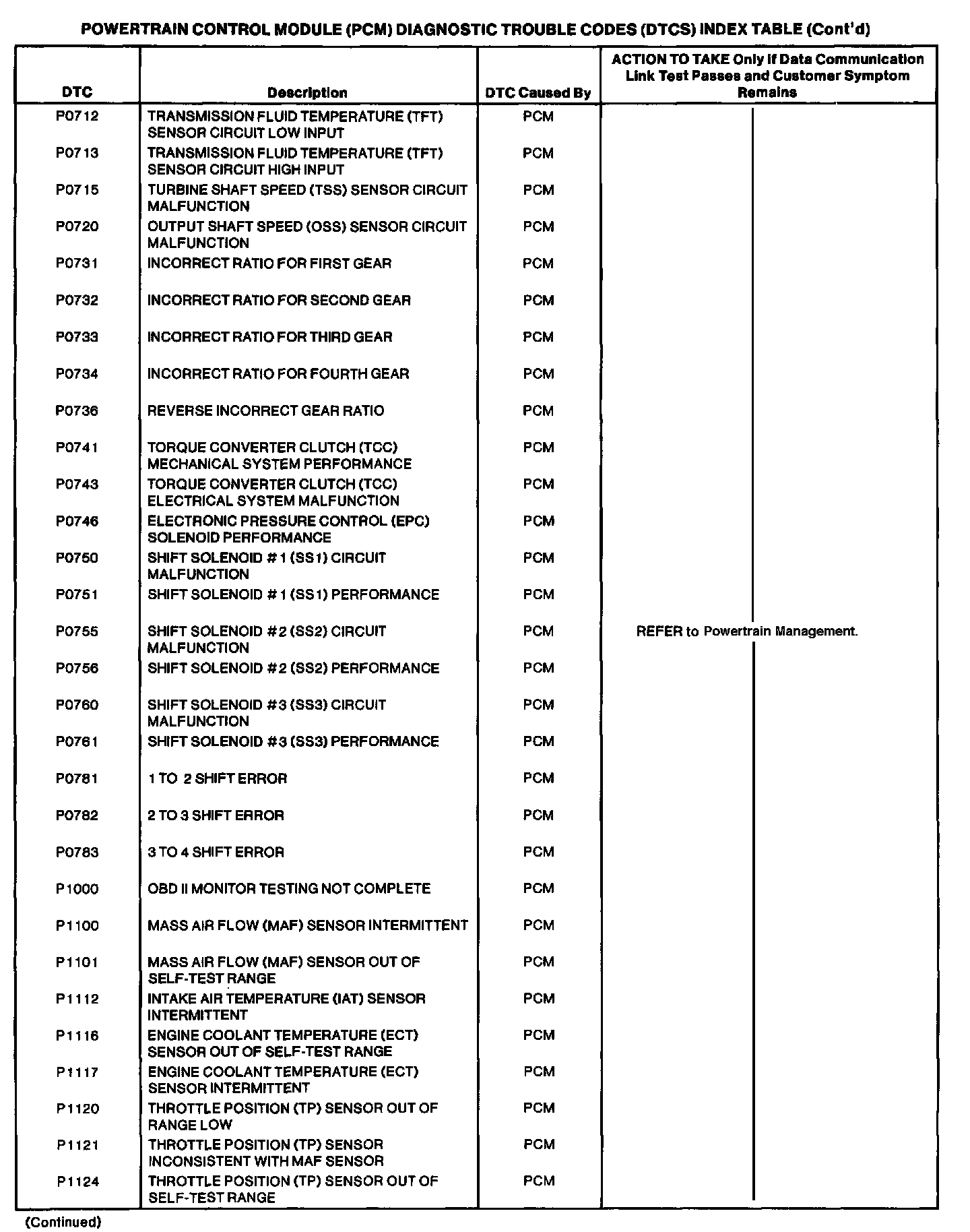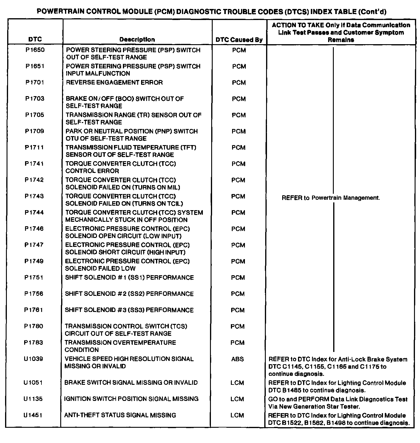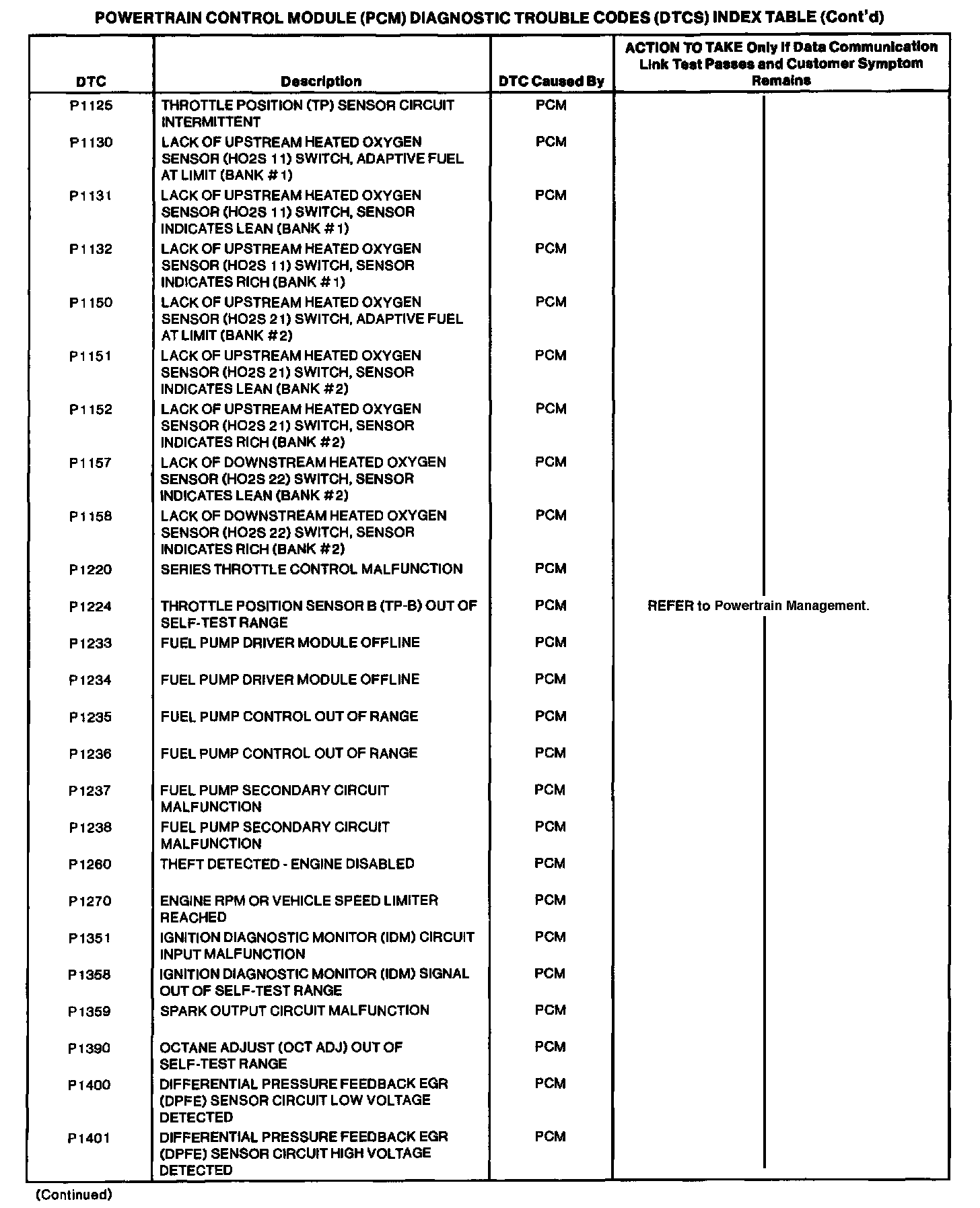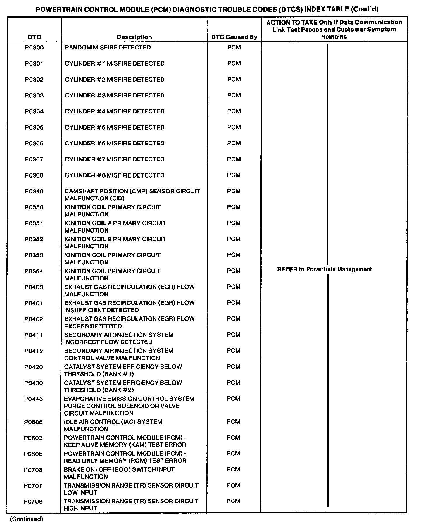 Powertrain Control Module DTC Chart Part 4 Of 6: