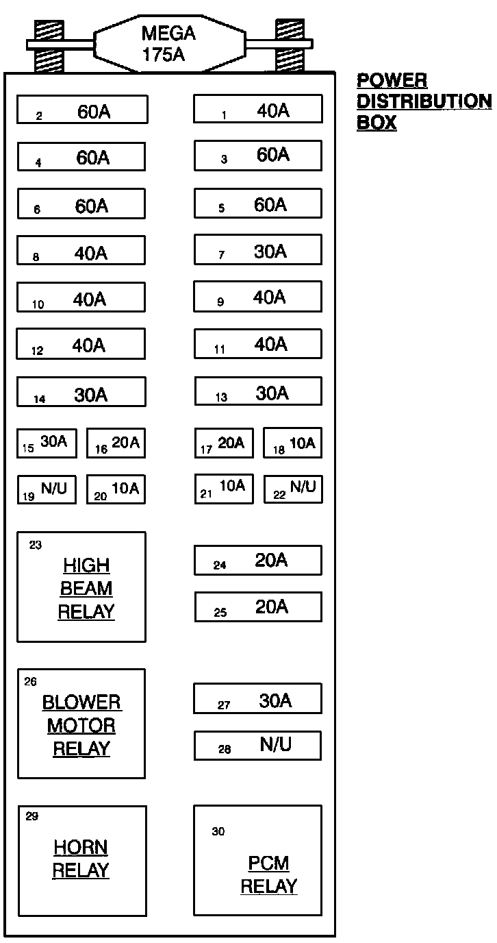 Located in the Power Distribution Box, LH side of engine compartment, above wheel well.