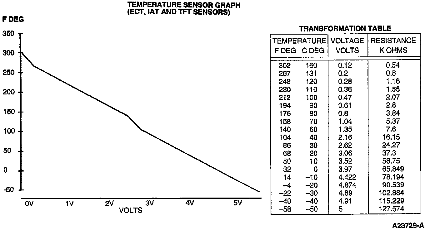 Temperature Sensor Graph (ECT, IAT and TFT Sensors)