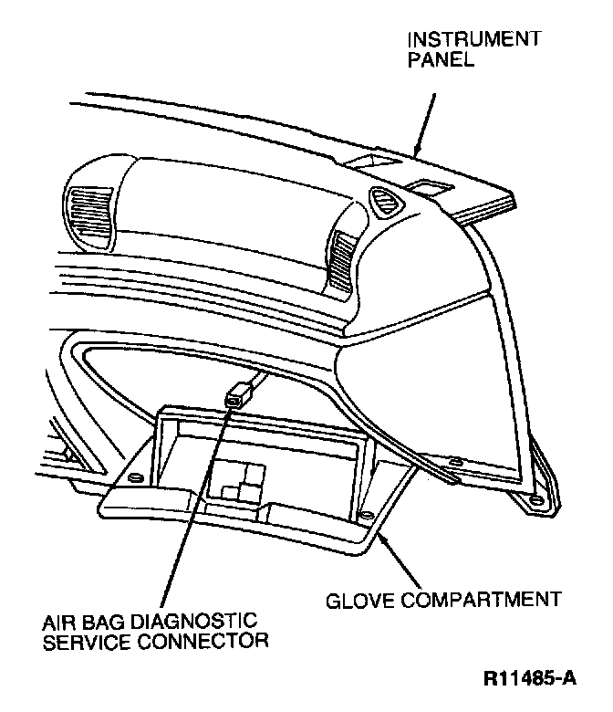 1. Locate the air bag diagnostic service connector containing Circuit 631 (T/R). This is a gray connector behind the glove compartment.