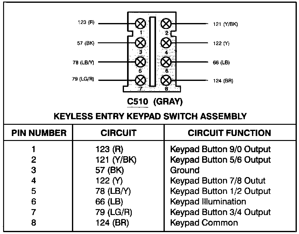 Keyless Entry Keypad Switch Assembly (C510):