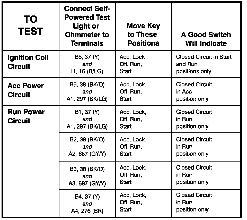 Ignition Switch - Component Testing Procedure (Part 2 Of 2):