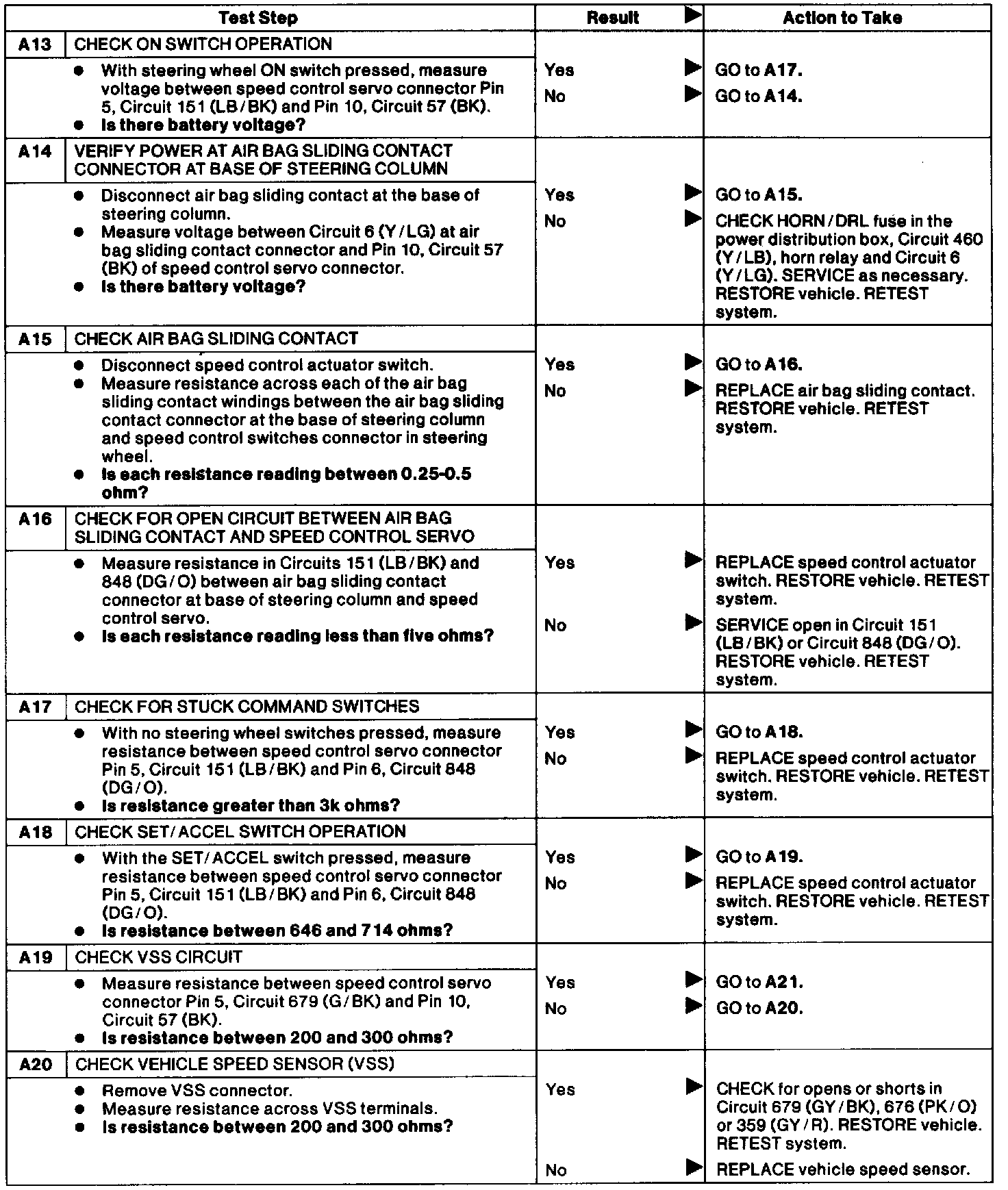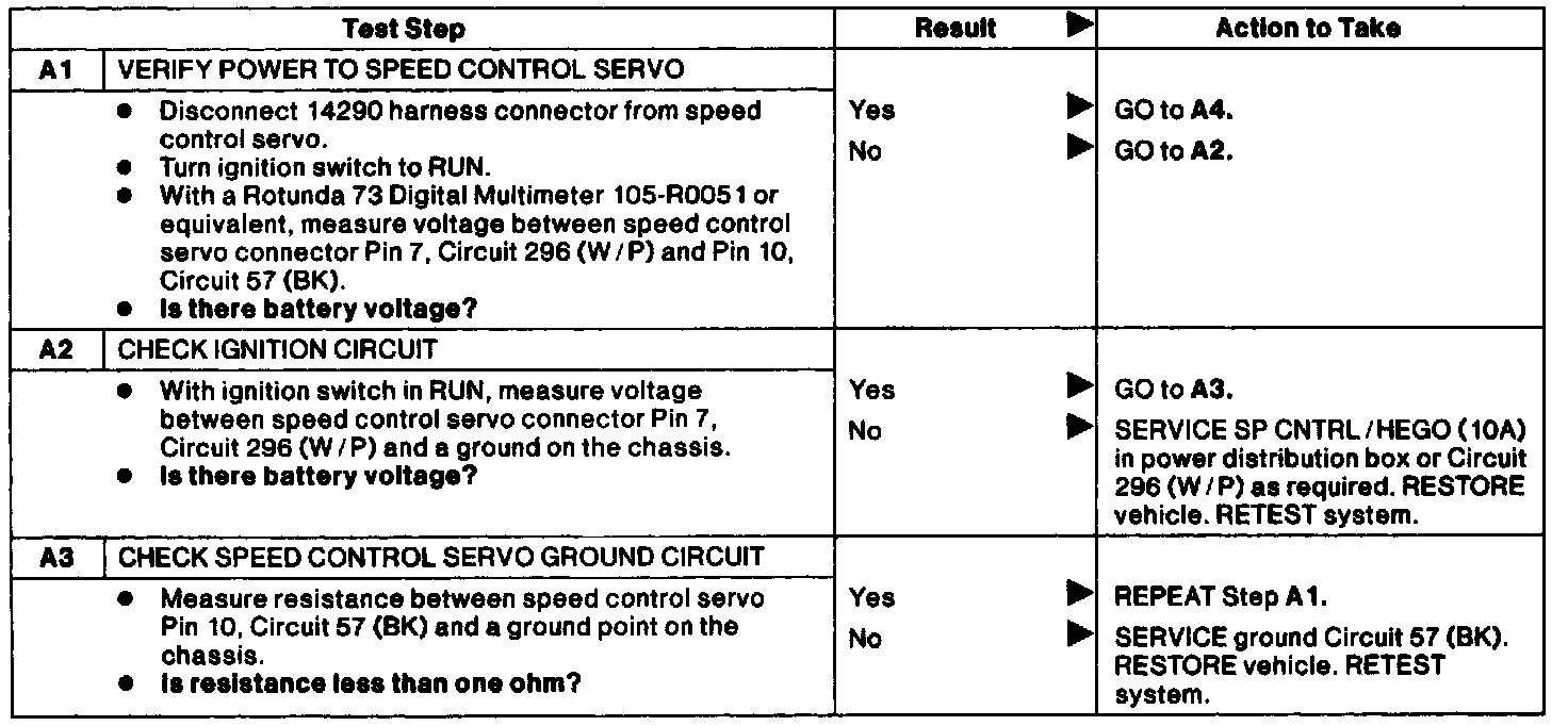 Test A: Speed Control Inoperative.: