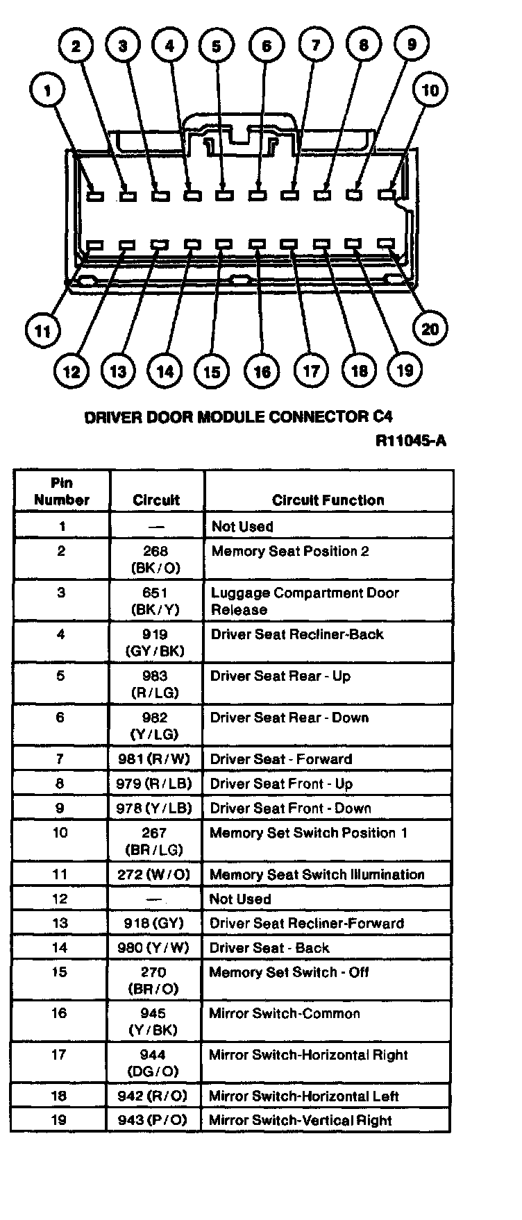 Driver Door Module Connector C4: