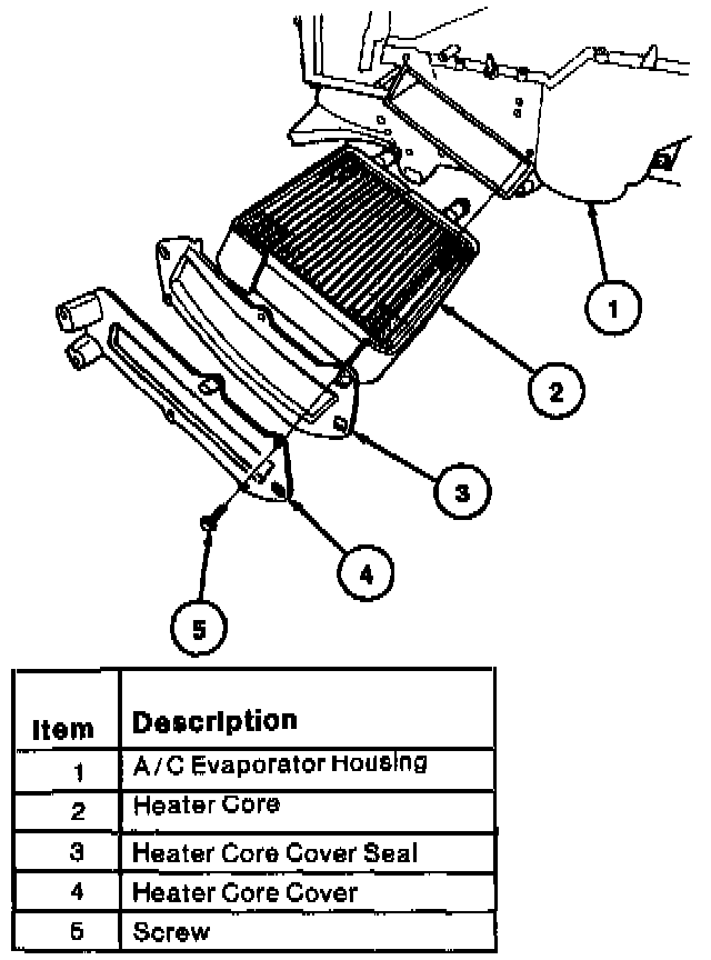 10. Remove heater core and seal from A/C evaporator housing by pushing on heater core tubes.