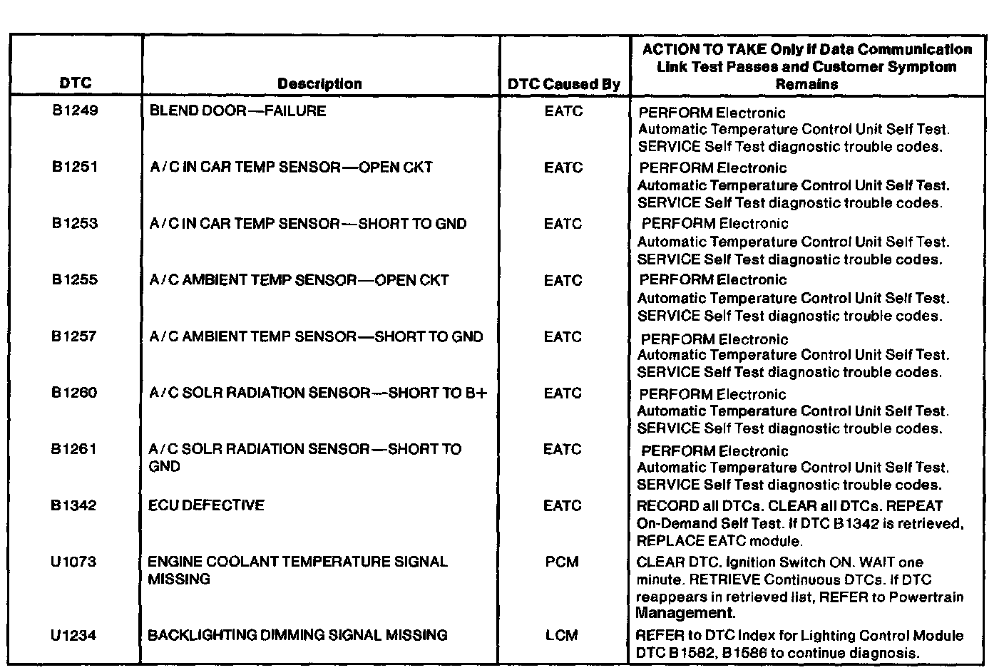 Electronic Automatic Temperature Control Module DTC Chart Part 2 Of 2: