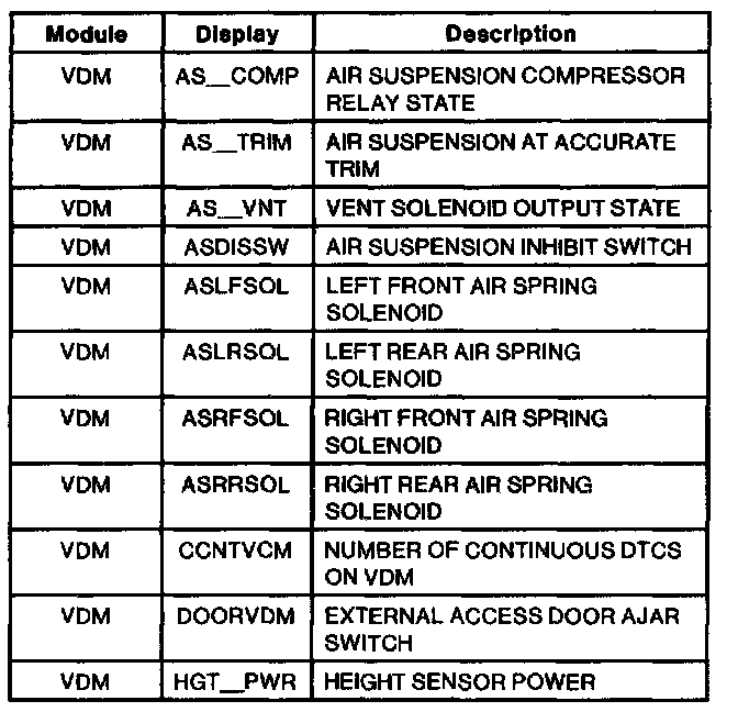 Vehicle Dynamics Module PID Index Part 2 Of 2: