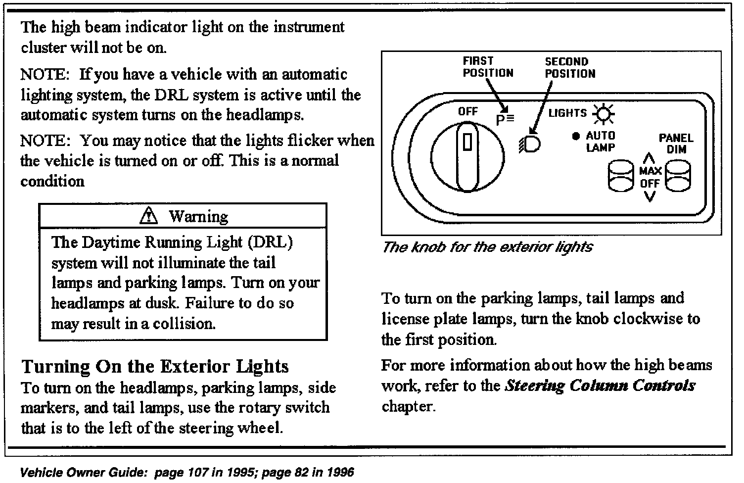 Vehicle Owner Guide: page 107 in 1995; page 82 in 1996