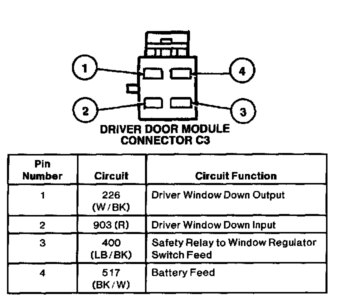 Driver Door Control Module Connector C3:
