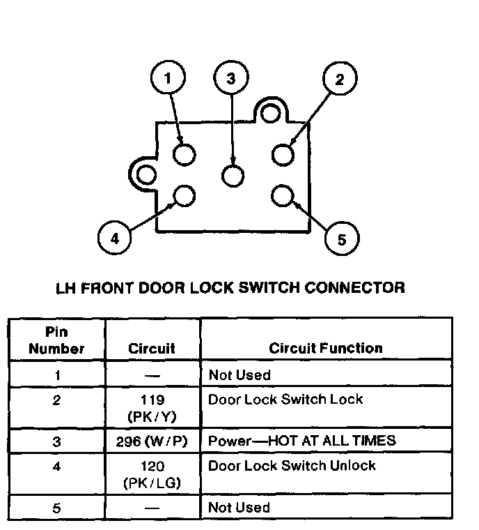 LH Front Door Lock Switch Connector: