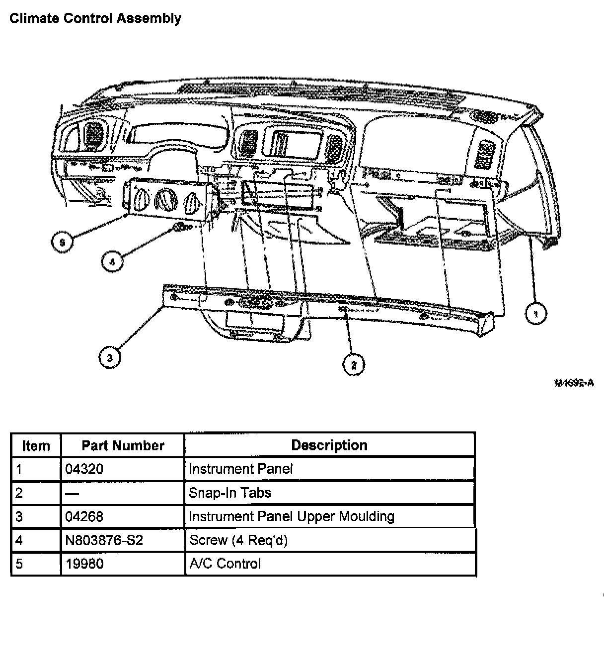 4. Remove four screws from the A/C control (19980) and pull the control out of the instrument panel (04320).