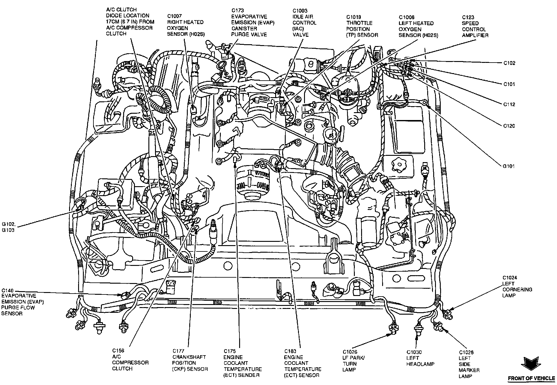 The Crankshaft Position Sensor is located at the RH front of the engine, near right ignition coil.