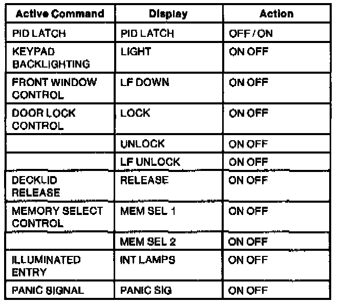 Driver Door Module (DDM) Active Command Index