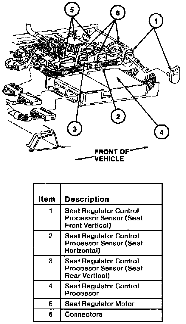 1. Access and disconnect connectors from seat regulator control processor sensor mounted to end of seat regulator motor.