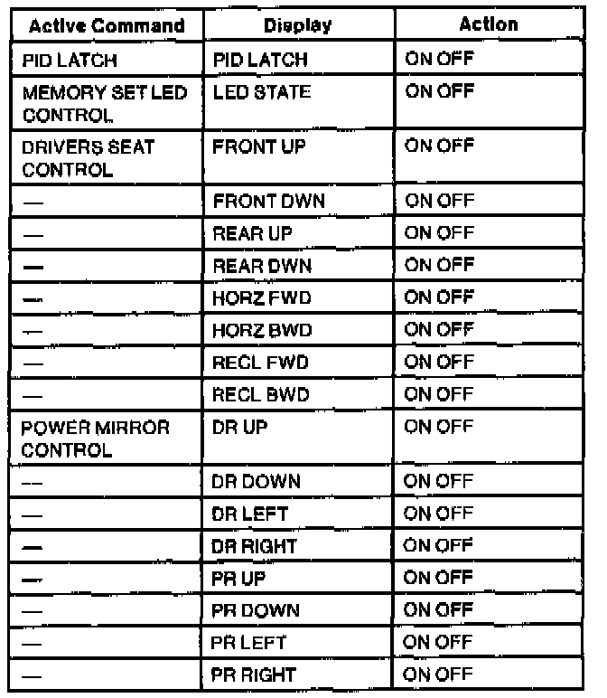 Driver Seat Module (DSM) Active Command Index
