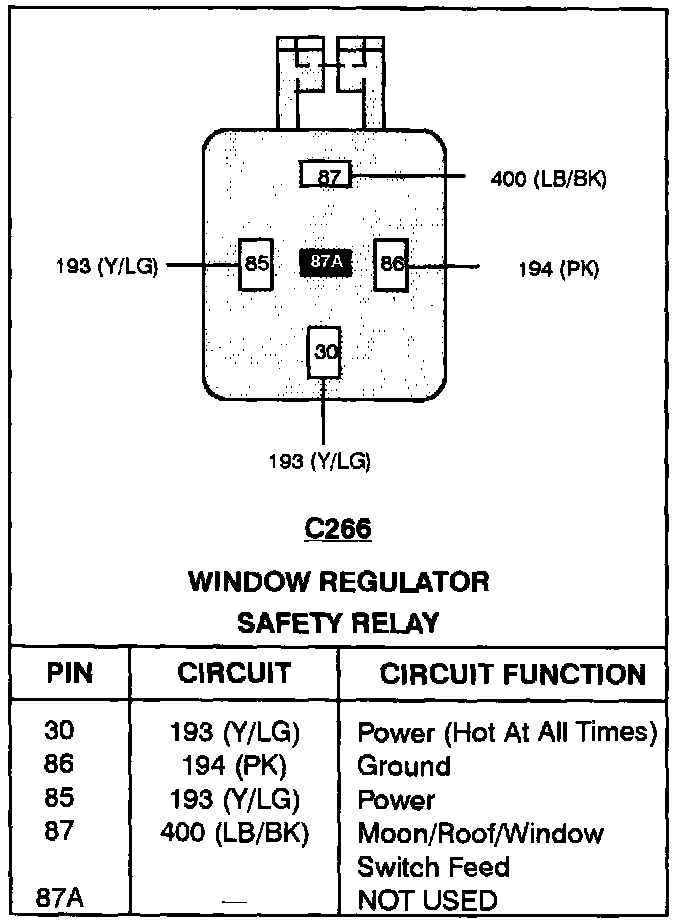 Window Regulator Safety Relay: