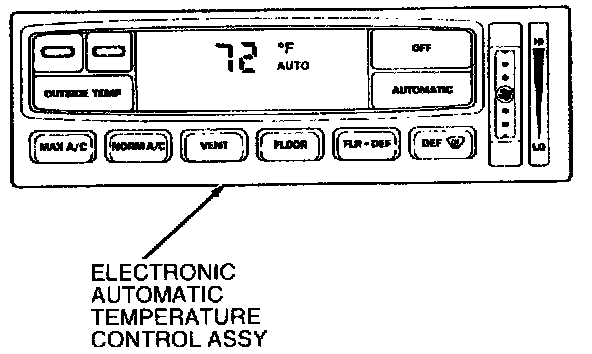 ^ an OFF button which, if pressed, will apply vacuum to close the A/C air inlet duct door, shut off A/C blower motor operation and discontinue climate control functions except OUTSIDE TEMP