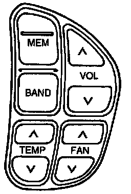 ^ The right button, marked FAN, operates to override automatic blower speed control operation or to increase or decrease the manually controlled blower speed. Depressing the FAN up button and releasing will increase the blower speed. Depressing the FAN down button will lower the blower speed.