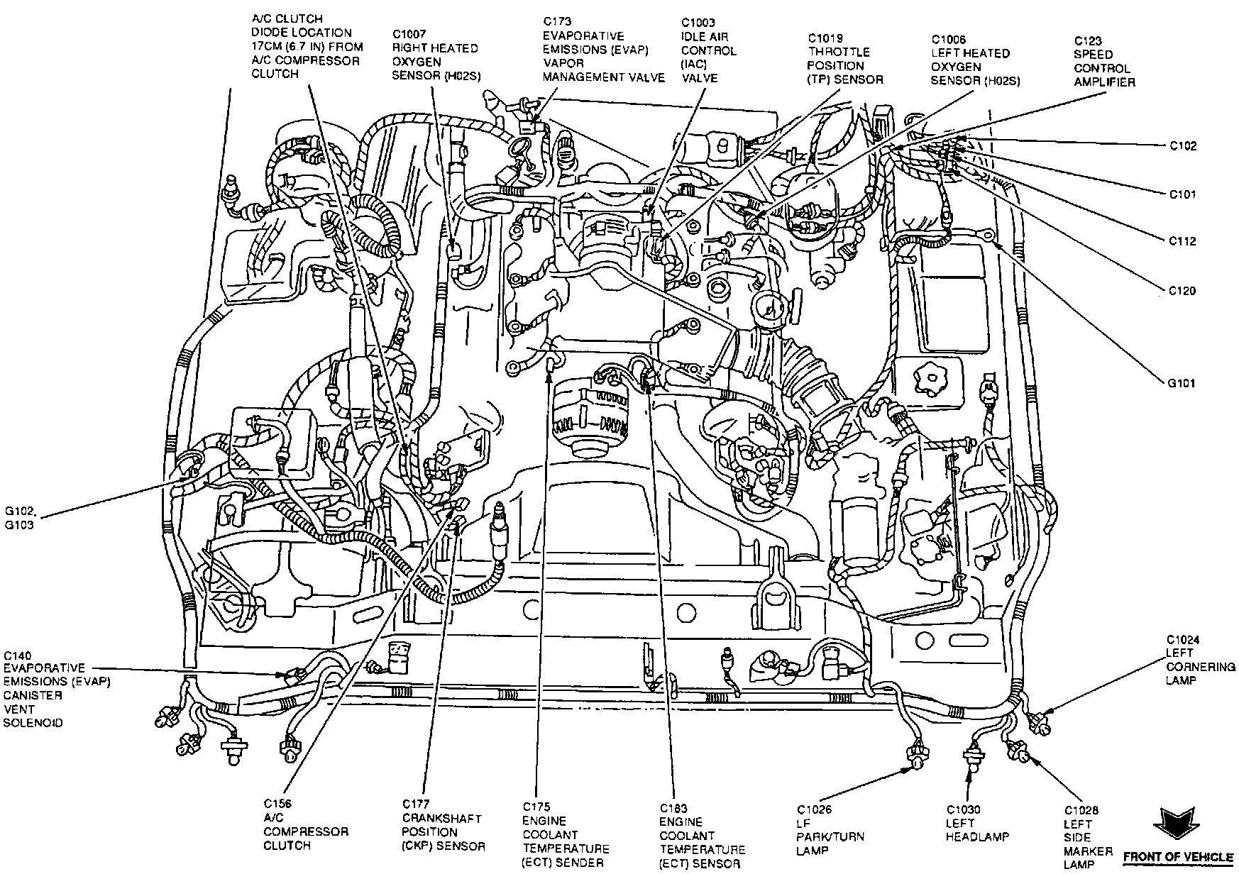 The Engine Coolant Temperature Sensor is located at the top LH front of the engine.