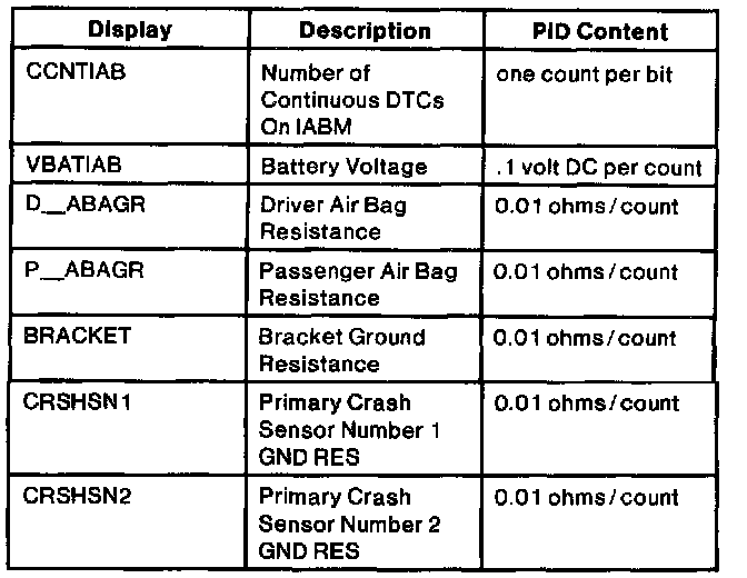 Air Bag Diagnostic Monitor Parameter Identification Index
