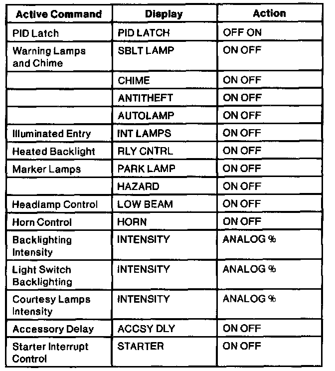 Lighting Control Module Active Command Index