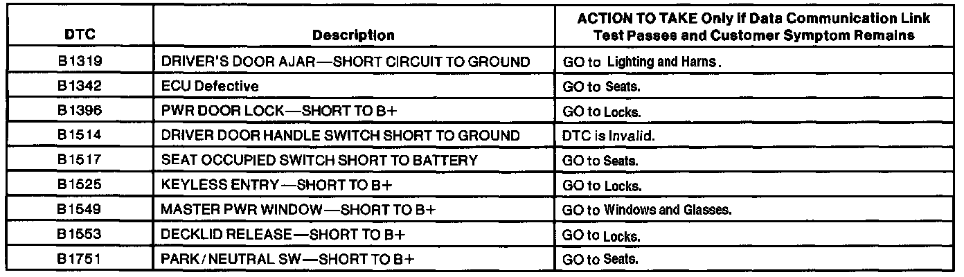 Driver Door Module DTC Chart