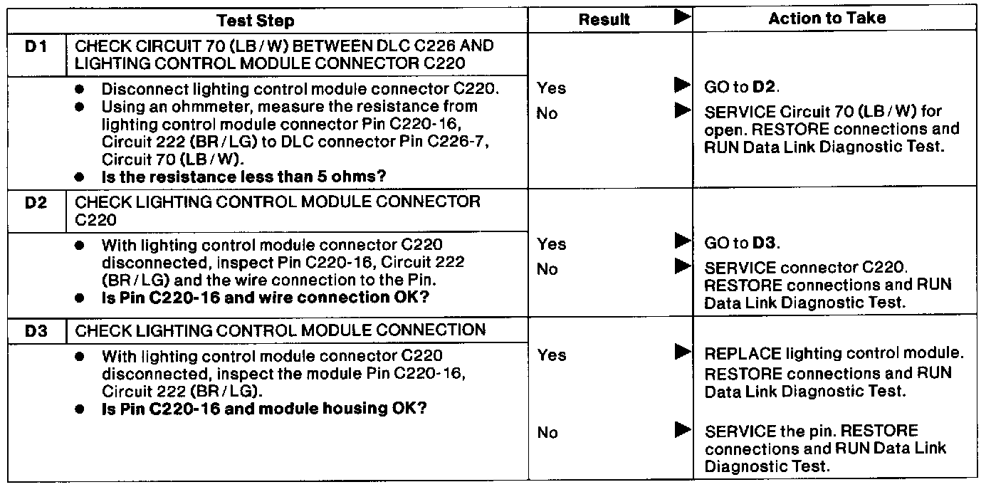 D : Lighting Control Module Does Not Respond
