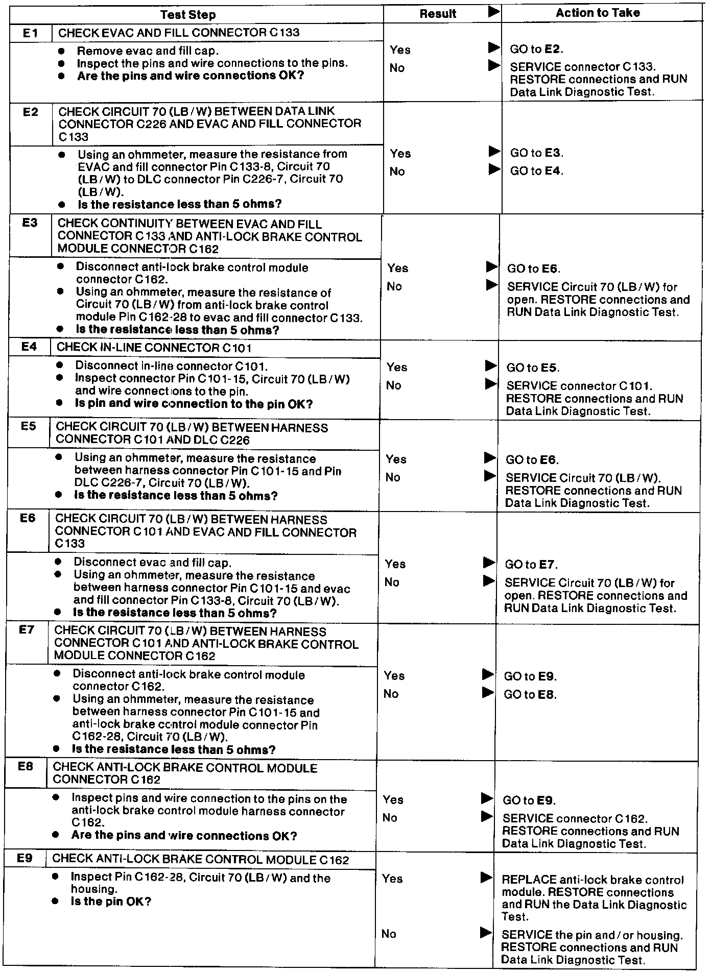 E : Anti-Lock Brake Control Module Does Not Respond