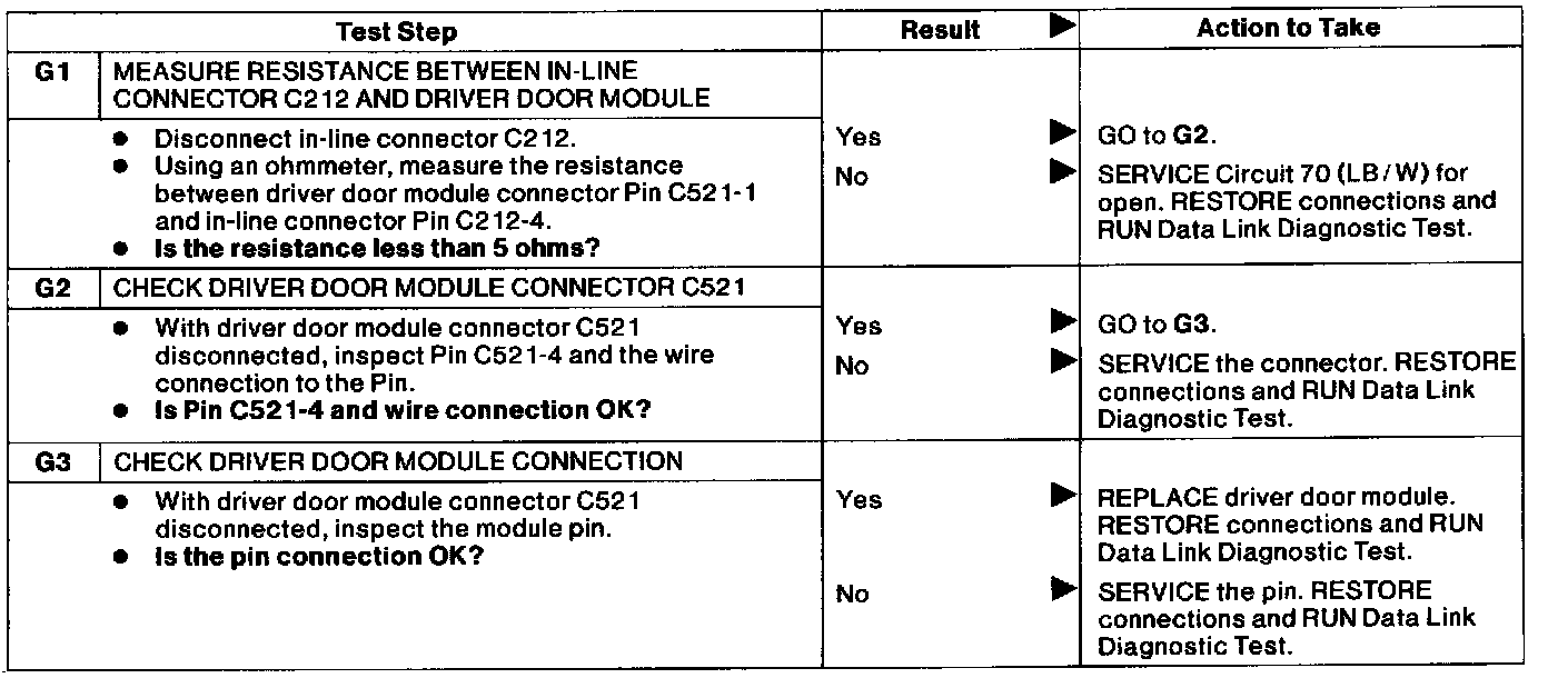 G : Driver Door Module Does Not Respond