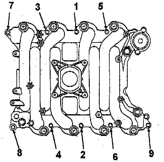 Step 2: Install and tighten nine bolts in sequence shown to 20-30 Nm (15-22 ft. lbs.).